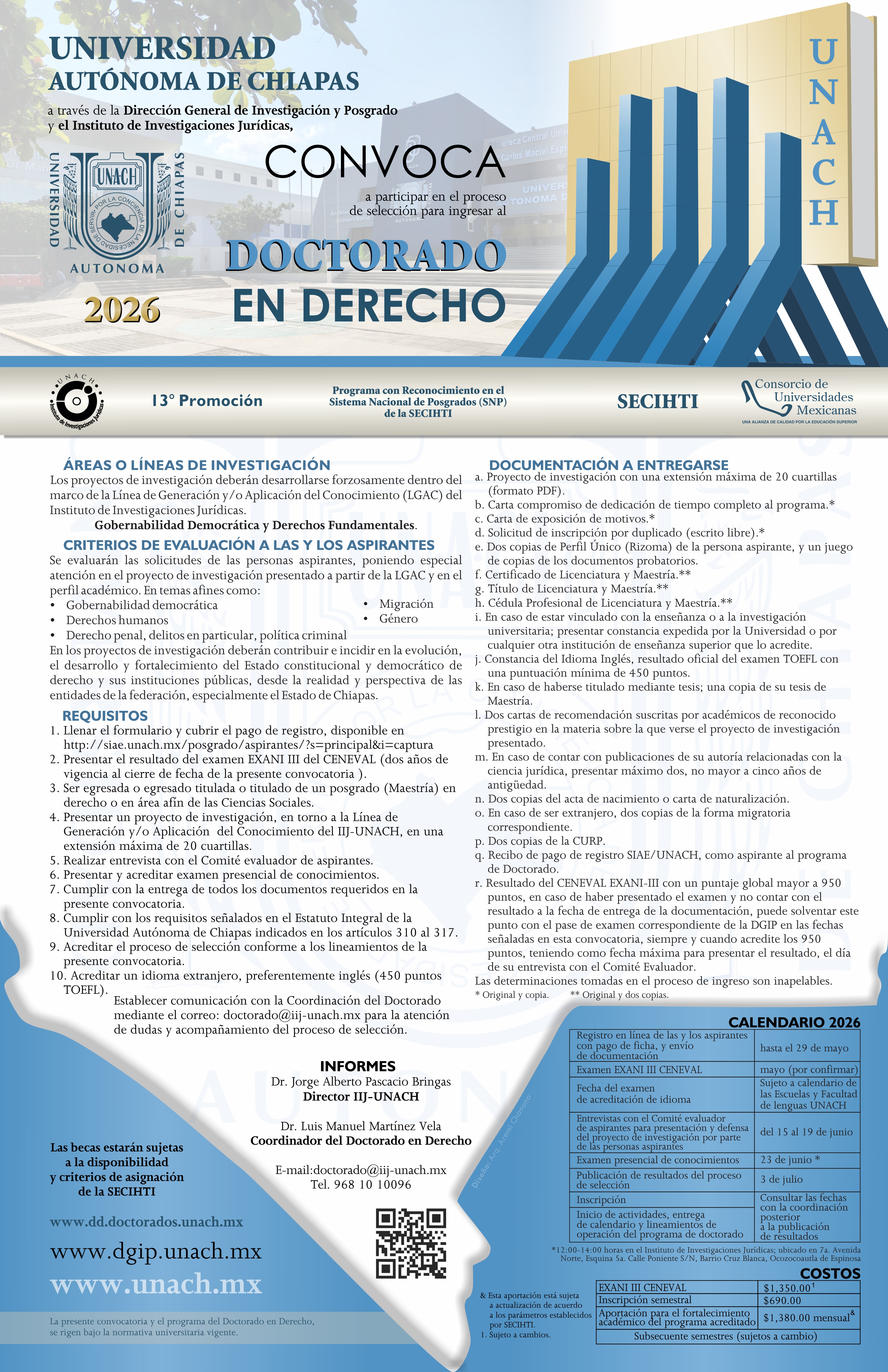 CONVOCATORIA DEL DOCTORADO EN DERECHO. REGISTRO EN LINEA, HASTA EL 29 DE MAYO DE 2026